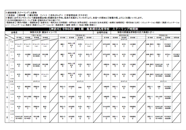 鹿島朝日高校は例年、神奈川大学 横浜キャンパス