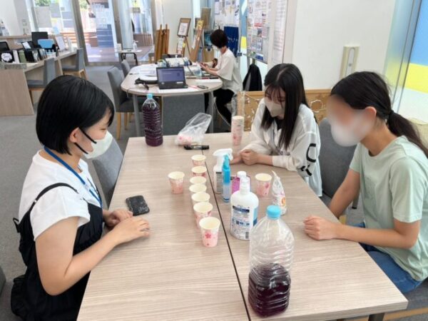 8月17日のオープンキャンパスと合同で、ムラサキキャベツを使用した実験を行っていきました(^^♪