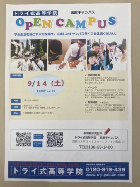 お問い合わせはこちら トライ式高等学院函館キャンパス TEL0138-68-1400