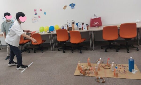 新聞紙で作った輪っかは、まっすぐに飛ばないので皆さん苦労してましたね😿