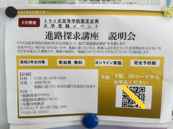 トライ式高等学院では、随時、転入学のご相談・体験授業・キャンパス見学を受け付けています。