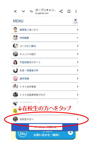 メニューから在校生の方へを開くと・・・