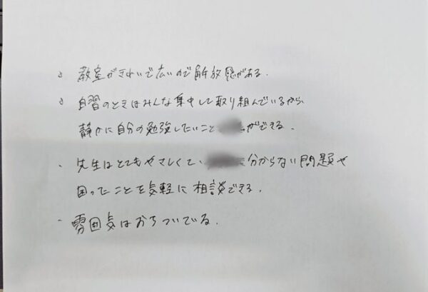 ・自習の時はみんな集中して取り組んでいるから、静かに自分の勉強したいことができる