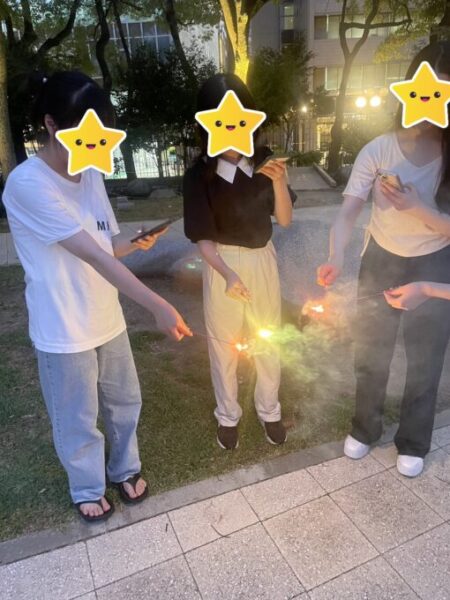 祭りの最後はやっぱり花火がしたい!と生徒会からの申し出で、夏祭りの最後に花火をみんなでしました☺