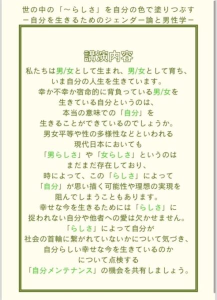 特に男性学を専門としている方です。