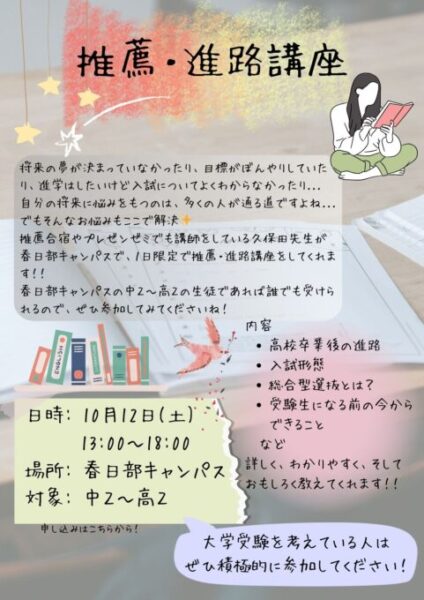 そんな進路について考えてみよう!という講座が春日部キャンパスで行われます✨