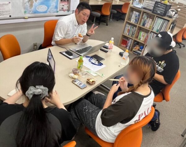 最近バタバタでなかなか生徒と接する時間が取れなかったキャンパス長の長谷川さんが珍しくお昼の時間に手が空いたとの事で生徒たちがキャンパス長の周りに集まって楽しそうに昼食を取っていました😆
