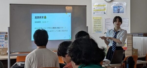 毎月のホームルームの時間は、生徒さん達がそれぞれの活動を自分の言葉で説明してくれたり、これから経験する生徒さん達にはすごく参考になる場だと思います。キャンパス長から、進路に関する重要な内容や単位を取るための必要なスケジュールも説明されますので、毎回必ず参加するようにしましょう!イベントに関する情報も満載です(^^)/