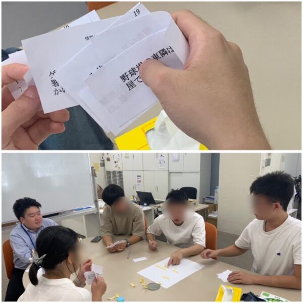 参加した6人全員で協力して、今度こそ正しい地図を作っていきます✊みんな自分の情報カードを入念にチェック!「まずは道に関する情報持ってる人教えて!」「次は交差点に隣接する建物の情報持ってる人いる?」前回よりもスムーズに進行している様子👍👍
