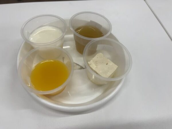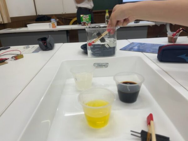 電解液の役割として用意していただいたものは、生活に身近な飲料やお豆腐など。