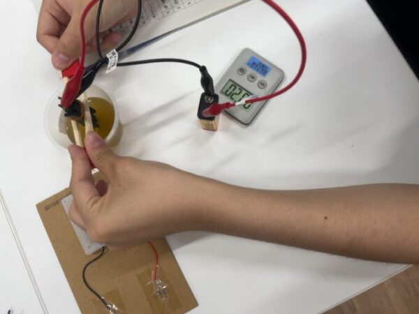 具体的に、燃料電池について考え、燃料電池を使った実験を行いました。