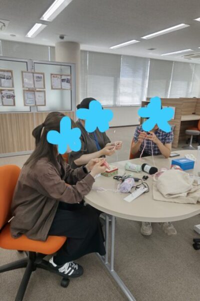 今回はかぎ針を使って、お花モチーフを編みました。編み物は初めて…という生徒たちでしたが、なんとかモチーフを作り、ヘアクリップなどを作りました✨