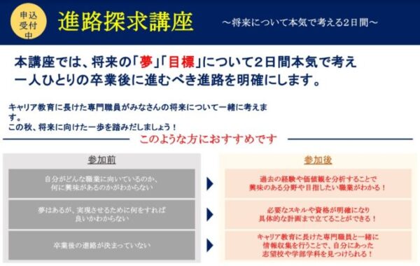2日間本気で考える進路探求講座を開催します。