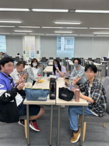 お昼休みでは、円テーブルもしくはテーブルを繋げて、集まってご飯を食べています🎶