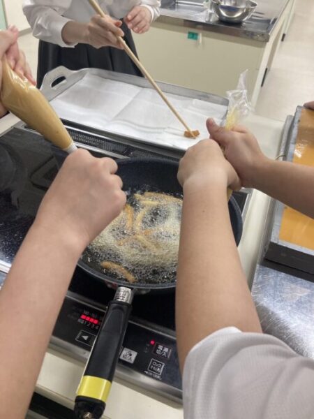 油が飛ばない様みんなで気を付けました✨