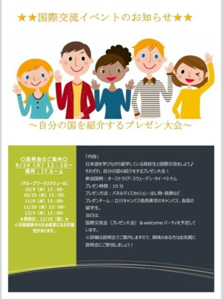 立川キャンパスでは国際交流イベントの説明会が行われました🎊