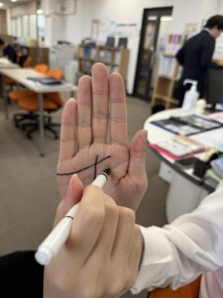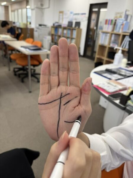 春日部キャンパスの生徒たちの、占いに振り回されるどころか、自分で手相を書いて理想の占い結果にしてしまう!
