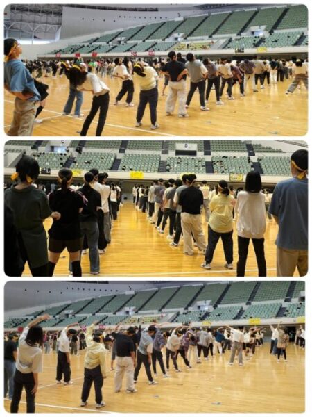 ラジオ体操でしっかりと準備運動をして競技スタート!