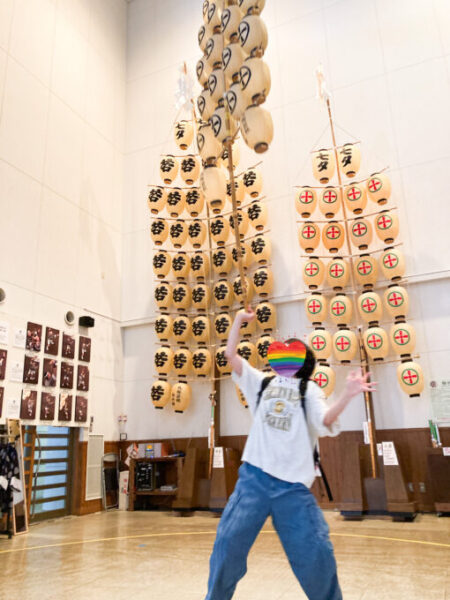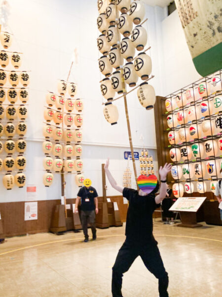 引率のスタッフは、体験用のミニ竿燈でもこんな感じです😅