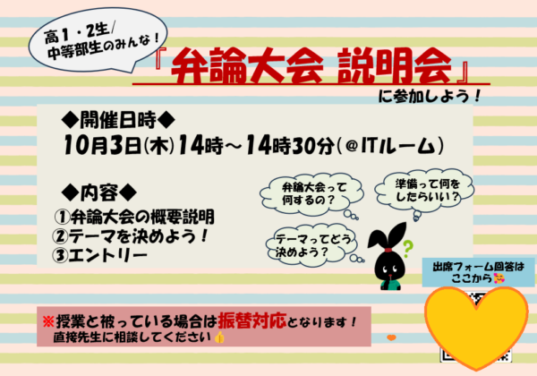 【🍁🍄弁論大会の説明会🍄🍁】を行います!