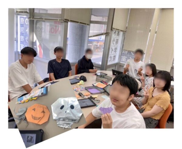 10月といったら、真っ先に思い浮かぶのはハロウィン🎃ですね😉早速みんなで装飾用の折り紙を折っていきます。今回は男の子の参加者が多めでしたが、「かわいいモチーフ作ってね!」のリクエストにちゃんと応えてくれていました😻みんな黙々と折り紙に集中!