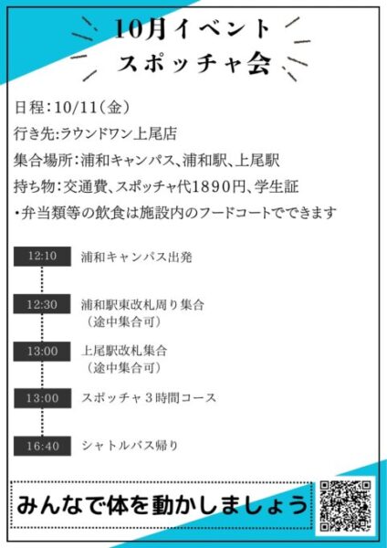 10月11日(金)に浦和キャンパスのみんなでスポッチャに行くイベントを開催します🔥