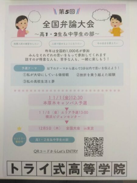 夏に開催された高3の部に続き、秋は弁論大会高1・2年の部が開催されます!🎃