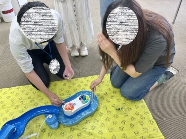 流しそうめん機械の水流のスピードが高速の為、時間内に全て取るのはかなり難しいです…!