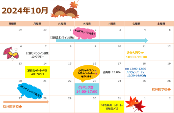 そして10/26-10/28で林間学校に行きます🎵