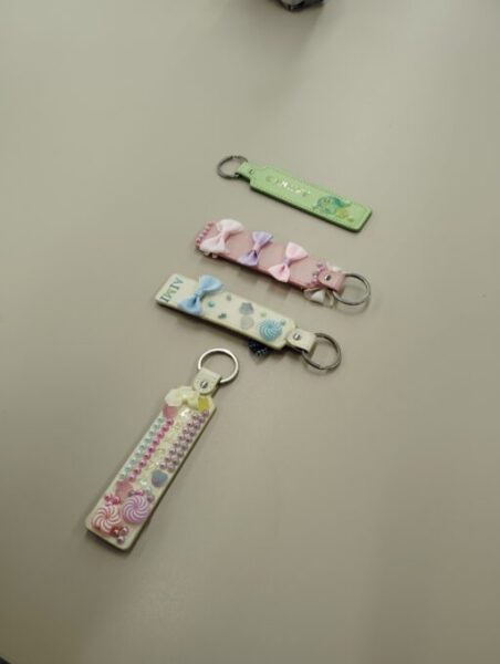 今回は、フェイクレザーキーホルダーをデコ✨しました!写真などをデコパージュで入れて、オリジナルのネームタグにしました💛