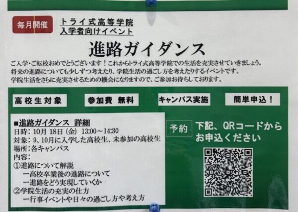 トライ式高等学院では、毎月「進路ガイダンス」を開催しています!