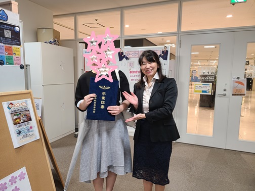 本日は卒業が確定した後期生Yさんへ、キャンパス長より卒業証書授与が行われました。