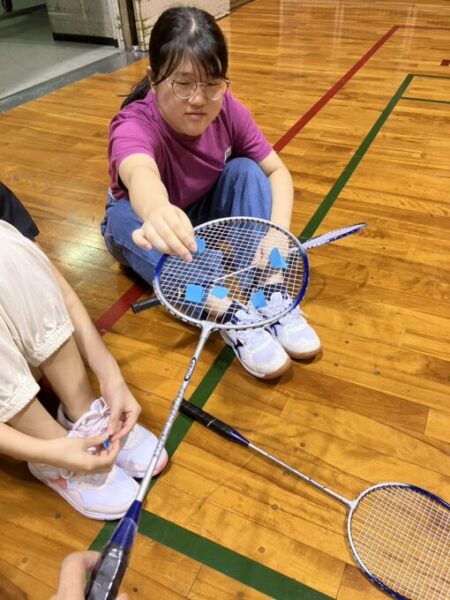 さて体操で体をほぐしたら、今日も、まずはバドミントン!