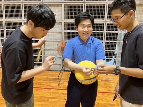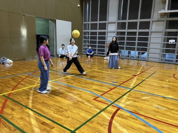 少し疲れてきた後半、バレーもやろう!とみんなで円になって、10回ラリーつなげる目標!!と始めたのですが・・・