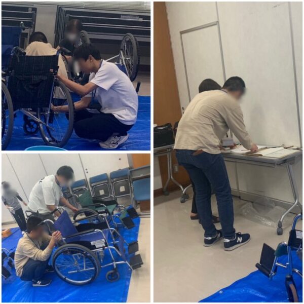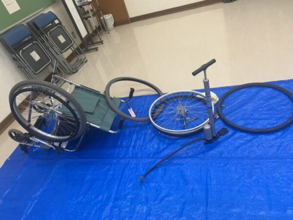 またこの日は車椅子の清掃だけでなくパンクの修理も行っていました。