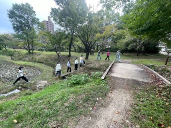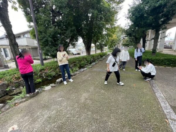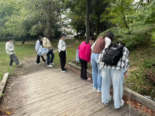 っと、急に橋の下をのぞきこむキャンパス生たち🔍👀