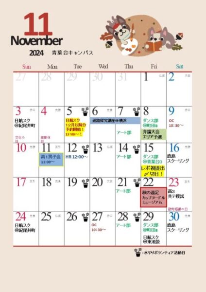 秋の遠足や、高1男子会などイベントを予定しておりますので