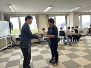 Y君には1人勝ちということでキャンパス長から景品をお渡し!