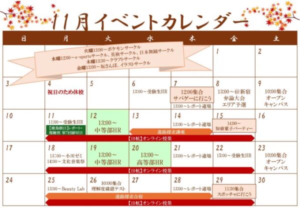 今回のブログでは 📢11月のイベントの告知📢を