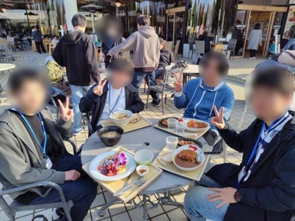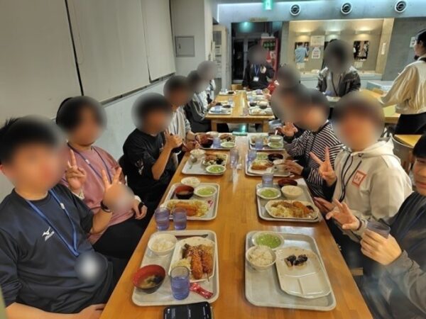 新しくできた友達と笑い合いながらご飯を食べていましたね!