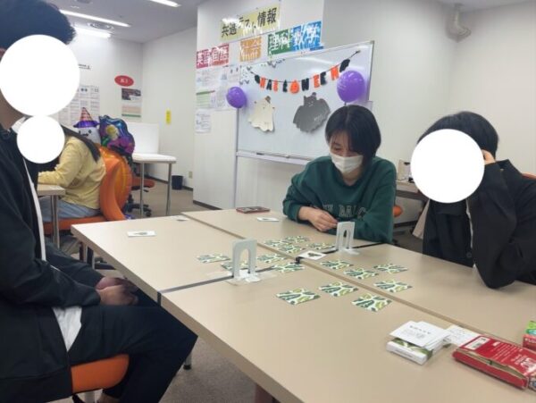 先月は様々なカードゲームにチャレンジしました!ハロウィンも近かったため、みんなでハロウィンの飾りつけを行って、お菓子を食べながら楽しみました👻