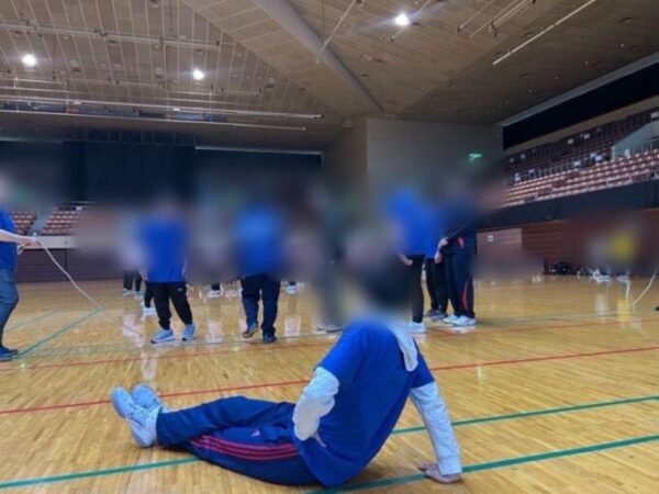 (↑大縄跳び後、力尽きて涅槃像のようになっていたK君でした👏)