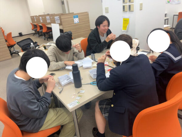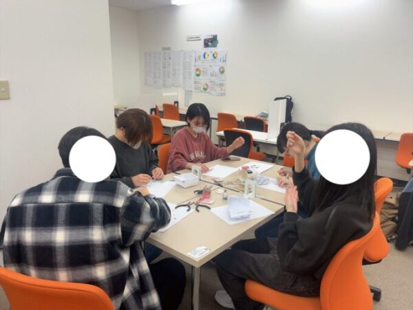 ビーズは意外と細かく、すべてのビーズを通すのはなかなか大変でしたが、時折友達と楽しくお話しながら楽しく作業を進めていきます👀