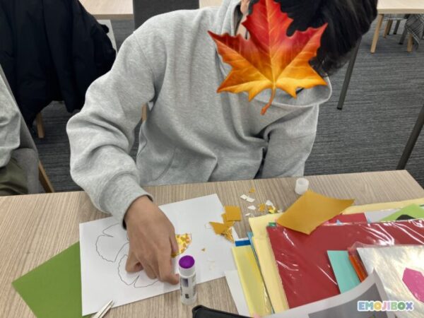 一人3枚の落ち葉を作成予定でしたが、1人1枚で精いっぱい。