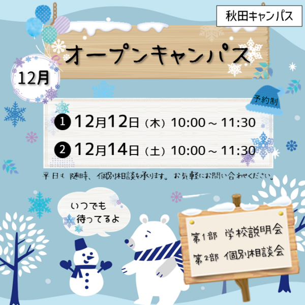 本日は、12月のオープンキャンパス&個別相談会開催のお知らせです✨