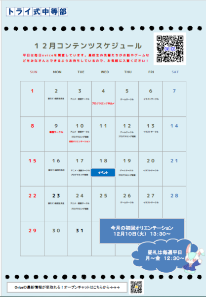 12月on-lineコンテンツ【Ovice】スケジュール💻