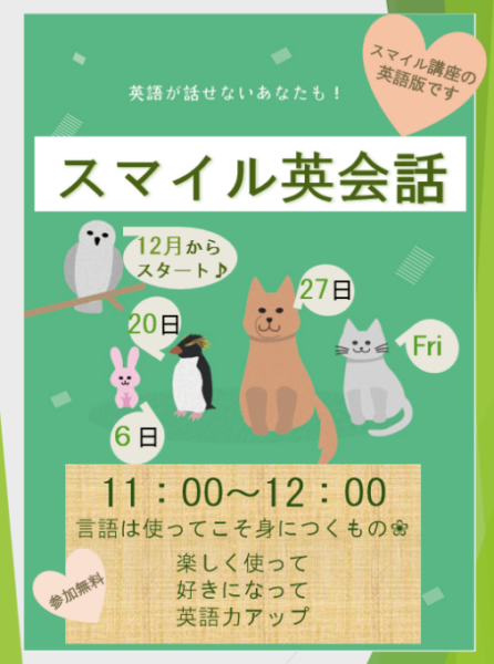 毎週月曜日に開催している『スマイル講座』同様、のんびり&穏やかに開催します!