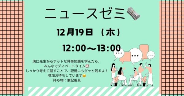 人気のニュースゼミ💡!m先生が最新の時事問題を解説してくださいます📰。その後、みんなでディスカッションも行いますよ🗣️。特に入試でディスカッションがある学校を目指す1、2年生にとっては絶好のチャンスです📚。日頃から意見を述べる練習をして、自信をつけましょう👍!