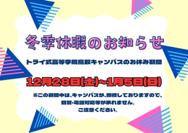 冬季休暇のお知らせです📣