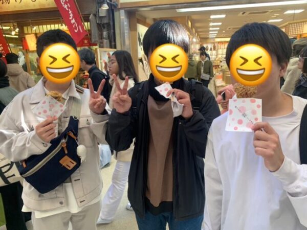 お参りをした後には、みんなでおみくじを引きました!末吉にがっくりしていたり、大吉が出ていたりみんな一喜一憂していました😊みんな目を皿のようにして内容を熟読していました!おみくじは、色々なことが書いてあるのでそれを前向きに受け取れるきっかけになると良いですね😌